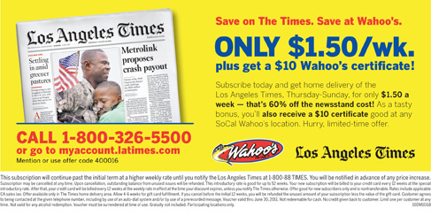 LA Times Wahoo’s – $1.50/week PLUS $10 Wahoo